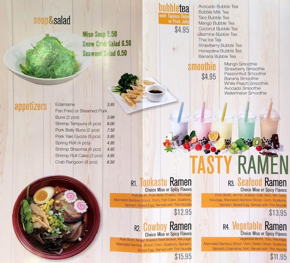 But the menu doesn’t stop there—indulge in their hearty ramen offerings, including the beloved Tonkotsu Ramen, praised for its melt-in-your-mouth pork. Additionally, discover a refreshing array of bubble teas, each priced at just $7.50, perfect to complement your meal.